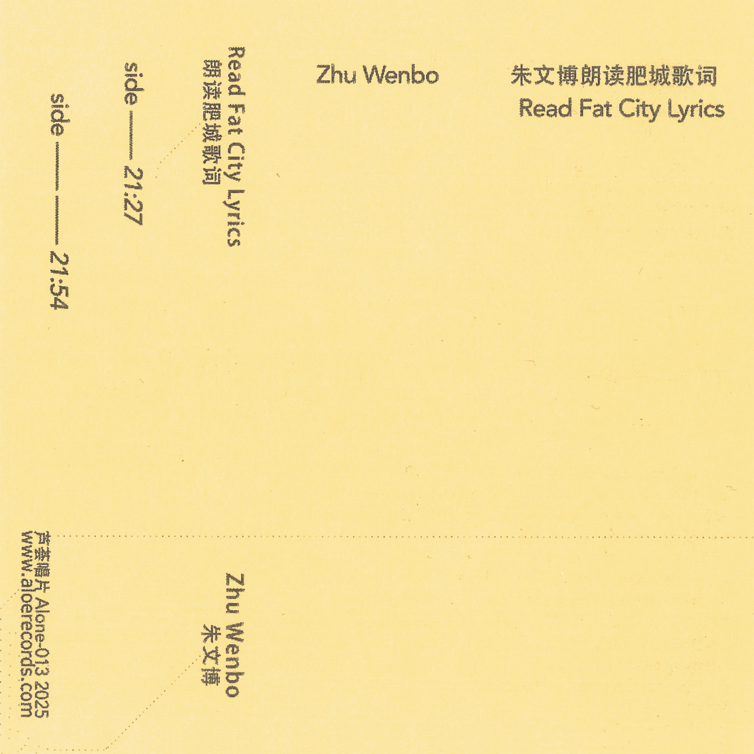 “Fat City is my first band. Ma Meng and I started rehearsal in late 2008, and we stopped activities at the beginning of 2013. At that time we really wrote a bunch of songs. Thanks to some suitable opportunities, I decided to do a special performance at Xiaozu Works on November 1st, 2024, using the lyrics of Fat City as performing materials. I printed all these lyrics on paper, and during the performance I cut them into fragments and picked them randomly and read. The process lasted long time, meanwhile I used a four-track cassette recorder recording and playing back. Forward, reverse, fast and slow. Twenty four lyrics in total. This is all the lyrics I can find, but there are still some forgotten. Now these songs sound like the same song. They have always been like this. " - Zhu Wenbo