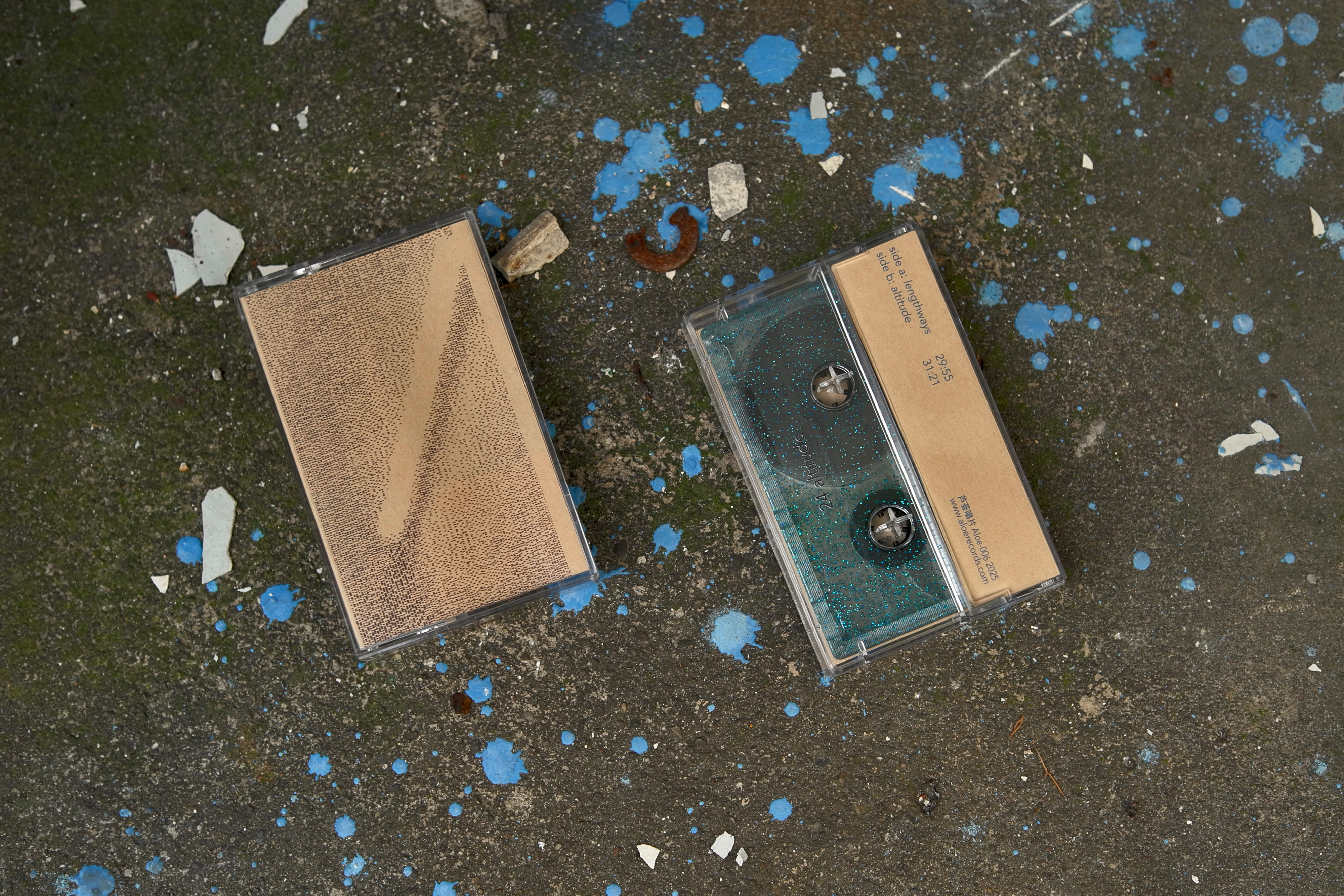 ‘-1 outside / 24 inside’ was recorded after the duo’s performance at Aloe on-site #20. The two tracks were captured separately: one evening in an underground pass-way, and another during daytime in a studio. Both locations are venues in Beijing that consistently hold experimental music concerts. Resonating with the album title on both metaphorical and geographical levels. With their playing, you can hear the touch of the musicians’ hand, hear the variations between amplified and un-amplified objects, and how sounds change in different spaces.